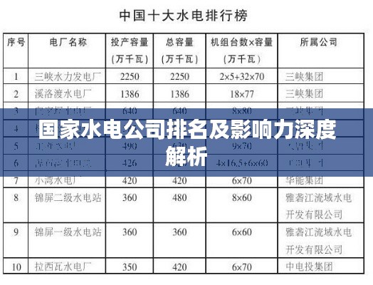 随着全球能源结构的转变,水电作为清洁、可再生的能源形式,其地位日益凸显,各国政府和企业纷纷加大对水电领域的投资力度,使得水电行业蓬勃发展,本文将对国家水电公司的排名及其影响力进行分析,为读者提供全面的行业视角。