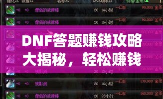 在繁忙的工作之余,许多人寻找一种轻松有趣的方式来赚取额外收入,作为一款备受欢迎的网络游戏,"DNF"(地下城与勇士)不仅能让玩家在游戏中体验刺激冒险,还能通过答题活动赚取丰厚的奖励,本文将为你提供最新的DNF答题赚钱攻略,助你轻松赚取游戏内的财富。