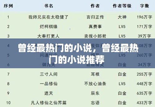 小说作为一种文学形式,自古以来就拥有着广泛的受众。它能够通过文字的力量,将读者带入一个全新的世界,感受不同的人生经历。在历史的长河中,总有那么几部小说,因其独特的魅力和深刻的内涵,成为了时代的标志,成为了曾经最热门的小说。