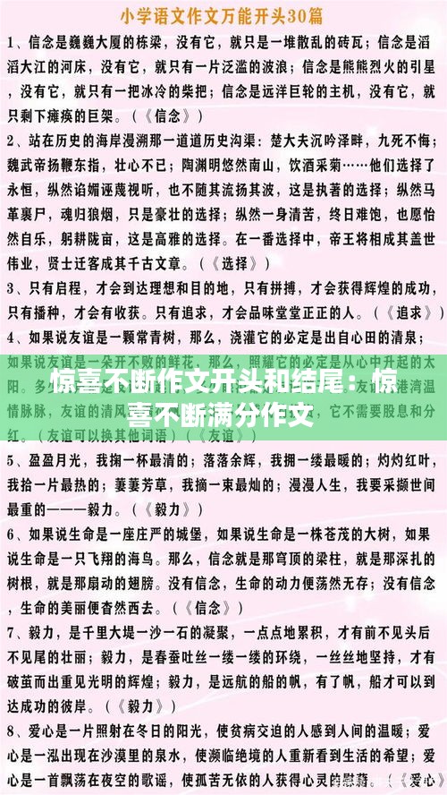 转载请注明来自大成醉串串企业,本文标题:《惊喜不断作文开头和结尾:惊喜不断满分作文 》